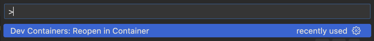 Open the VSCode command palette using and select “Reopen in Container”